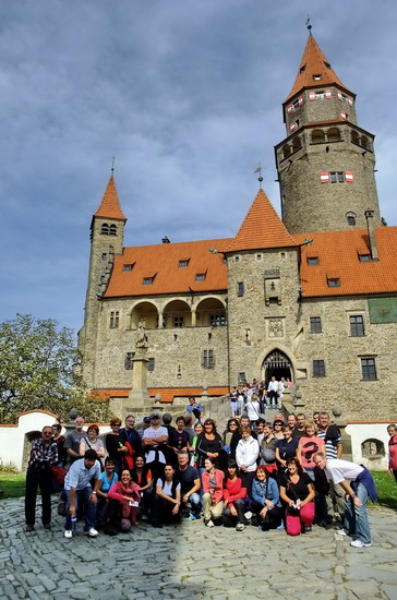 Hrad Bouzov. Vyzerá ako opravený stredoveký, ale postavený bol koncom 19. stor.
