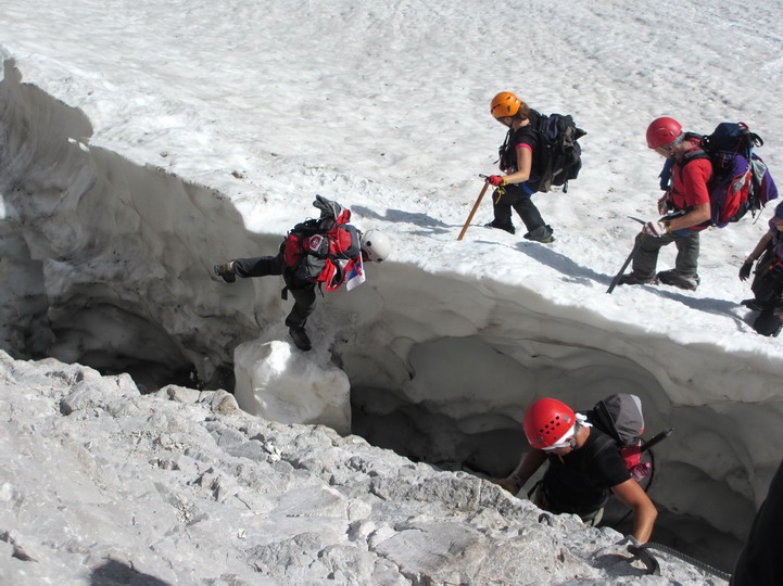 Najobávanejšia časť - ľadovec ako odtrhnutý z reťaze. Pomohol nám už len mostík a Karol.